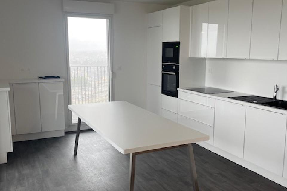 Rue de Chateaugiron au 9 ème étage d'un immeuble neuf, 1ère occupation, nous vous proposons cet agréable Type 4 de 91,91 m2 comprenant séjour avec cuisine américaine aménagée équipée, 3 chambres, deux salle d'eau, WC. Grand balcon d'une surface de 41,49 m2. Vous bénéficierez également de 2 parkings en sous-sol. Loyer 1200 € + 100 € de provisions sur charges. Honoraires à la charge du locataire 1194,83 € (dont 275,73 € pour l'état des lieux)