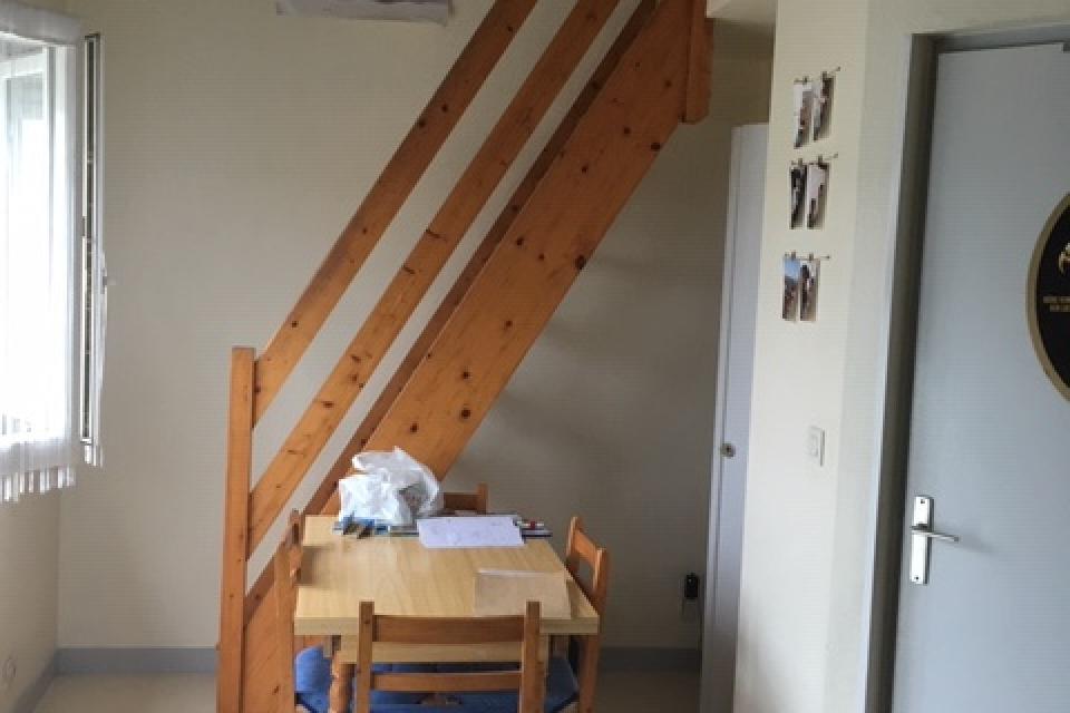 Rue de Vern - Dans petite copropriété - Type 1 duplex en bon état - 30.08 m2 hab - Entrée - Pièce principale avec kitchenette équipée - Salle de bains avec wc - Chambre en duplex - Stationnement dans la copropriété - Libre le 5 janvier - Loyer 486.62 € + 30 € - Honoraires à la charge de l'acquéreur 391.04 € dont 90.24 € pour l'état des lieux