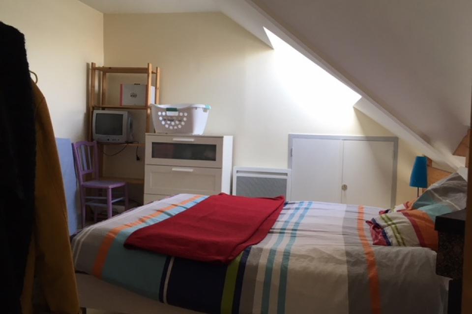 Rue de Vern - Dans petite copropriété - Type 1 duplex en bon état - 30.08 m2 hab - Entrée - Pièce principale avec kitchenette équipée - Salle de bains avec wc - Chambre en duplex - Stationnement dans la copropriété - Libre le 5 janvier - Loyer 486.62 € + 30 € - Honoraires à la charge de l'acquéreur 391.04 € dont 90.24 € pour l'état des lieux