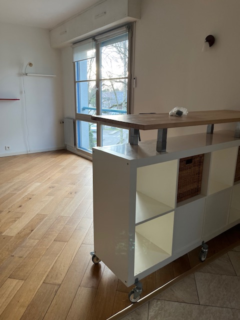 EN EXCLUSIVITE - Quartier Cleunay -Au pied de la Clinique de la Sagesse - Dans une copropriété bien entretenue - Type 1-30.03 m2 - Entrée avec placard - Pièce de vie avec belle cuisine ouverte aménagée-équipée (plaques vitro et hotte) - Salle d'eau avec wc - Garage
