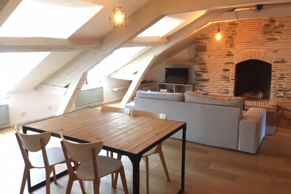 RUE VASSELOT - COLOCATION ACCEPTEE - Magnifique type 4 MEUBLE - 96 m2 au sol - 69 m2 habitables - Entrée, dégagement, salon-séjour sur parquet massif avec cheminée décorative, poutres, cuisine aménagée-équipée, 3 chambres, salle de bains, wc. Loyer 1390 € +96 € Charges (fibre, taxe orures ménagères, charges copropriété) - Honoraires locataire 897 € dont 207 € pour l'état des lieux - LIBRE le 19 décembre