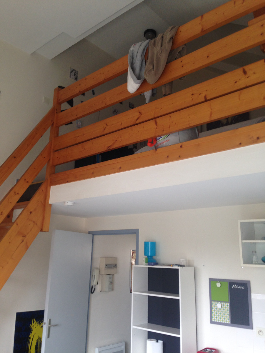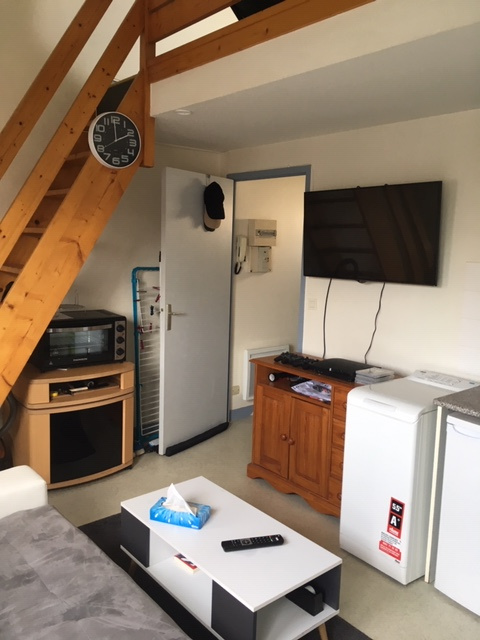 Rue de Vern - Dans petite copropriété - Type 1 duplex en bon état - 23.49 m2 hab - Entrée - Pièce principale avec kitchenette équipée - Salle de bains avec wc - Chambre en duplex - Stationnement dans la copropriété - Libre - Loyer 483.21 € + 30 € - Honoraires à la charge de l'acquéreur 305.37 € dont 70.47 € pour l'état des lieux