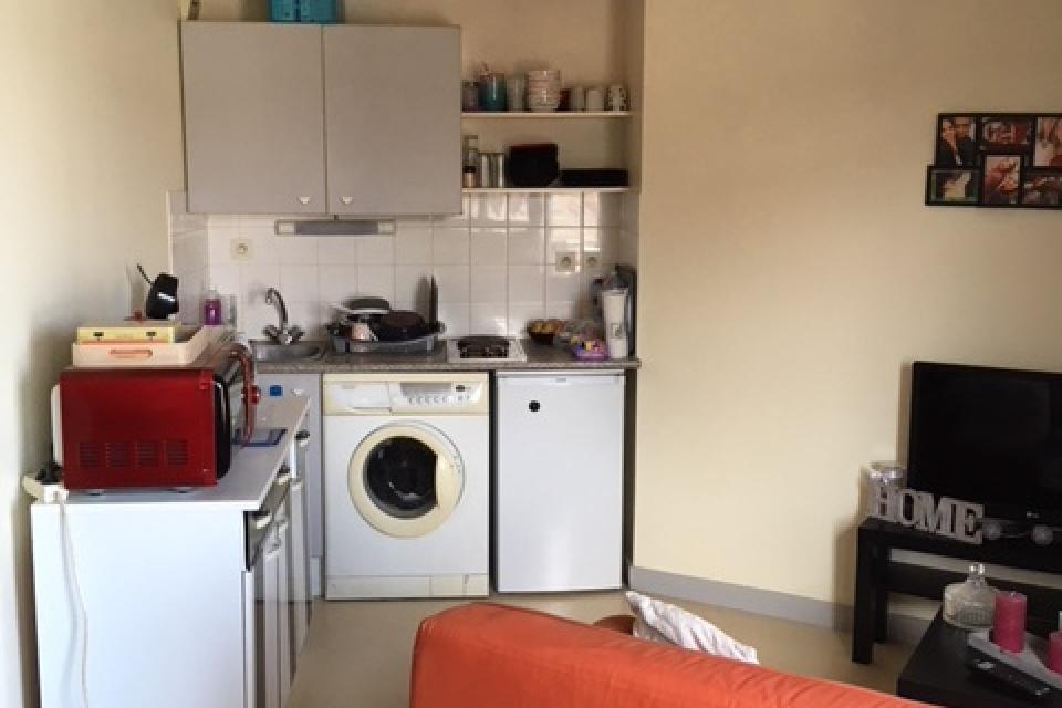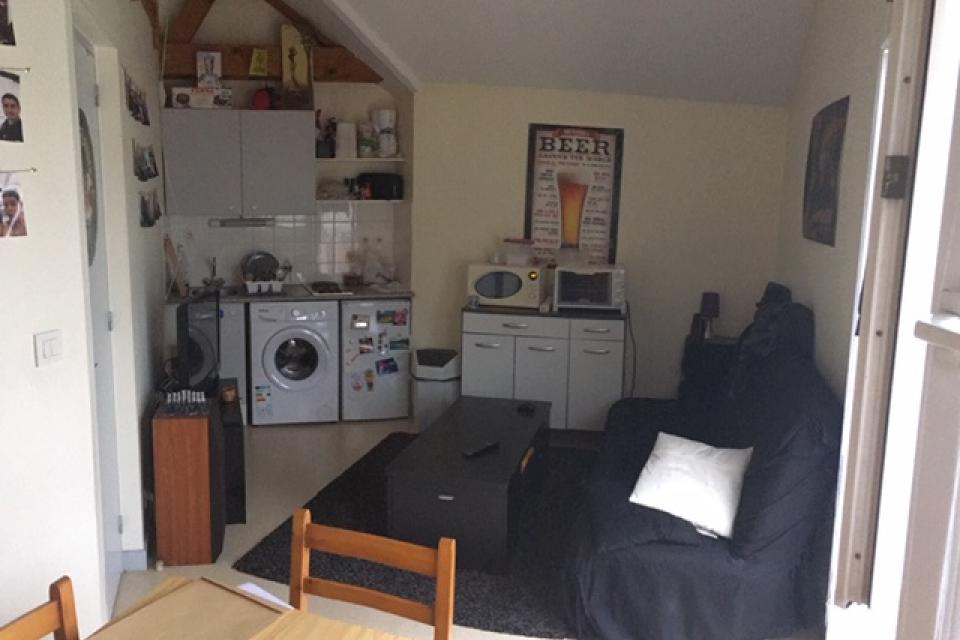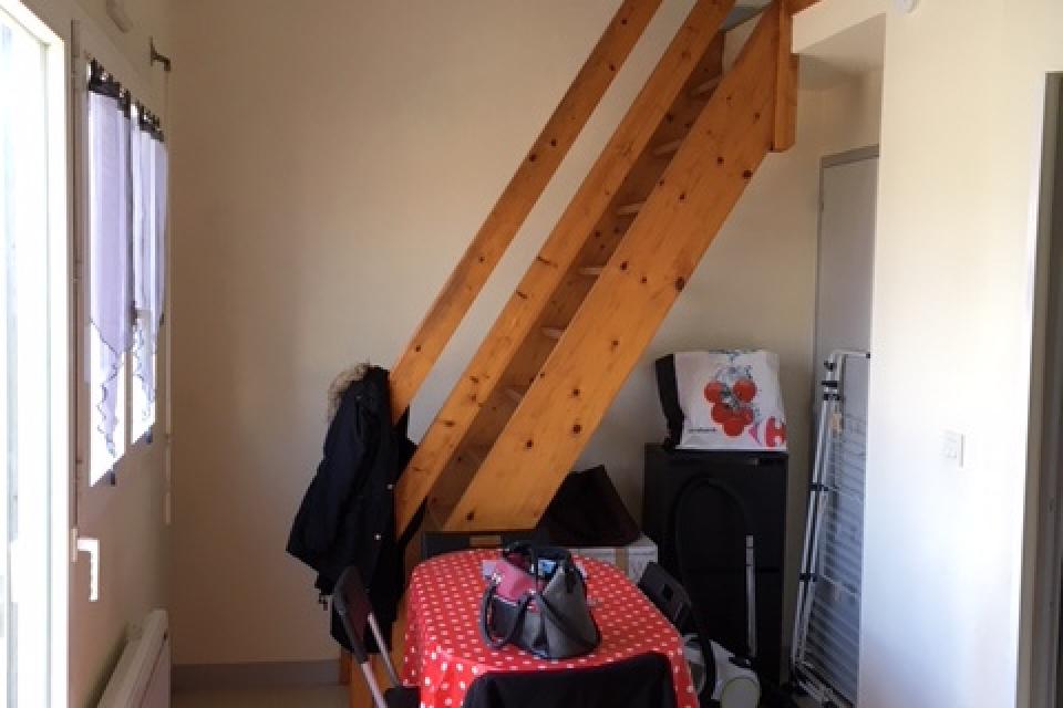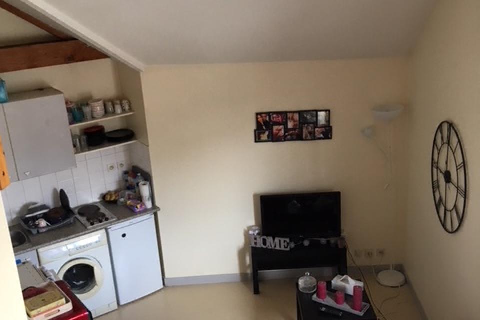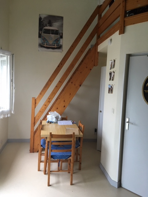 Rue de Vern - Dans petite copropriété - Type 1 duplex en bon état - 30.08 m2 hab - Entrée - Pièce principale avec kitchenette équipée - Salle de bains avec wc - Chambre en duplex - Stationnement dans la copropriété - Libre le 5 janvier - Loyer 486.62 € + 30 € - Honoraires à la charge de l'acquéreur 391.04 € dont 90.24 € pour l'état des lieux