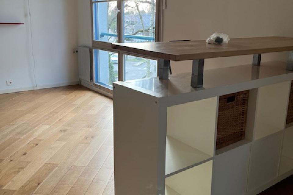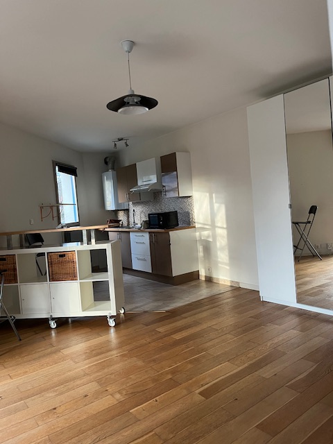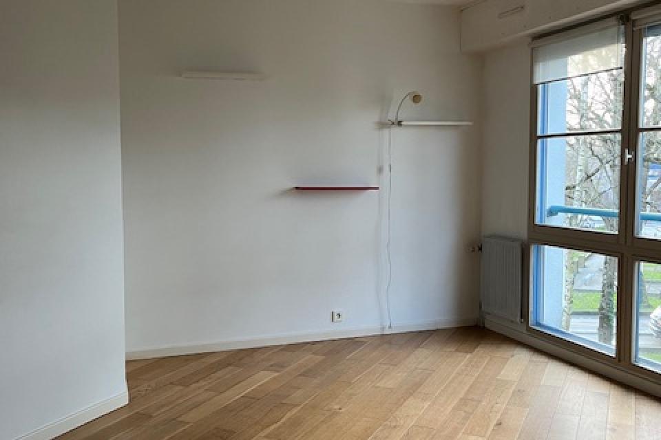 EN EXCLUSIVITE - Quartier Cleunay -Au pied de la Clinique de la Sagesse - Dans une copropriété bien entretenue - Type 1-30.03 m2 - Entrée avec placard - Pièce de vie avec belle cuisine ouverte aménagée-équipée (plaques vitro et hotte) - Salle d'eau avec wc - Garage